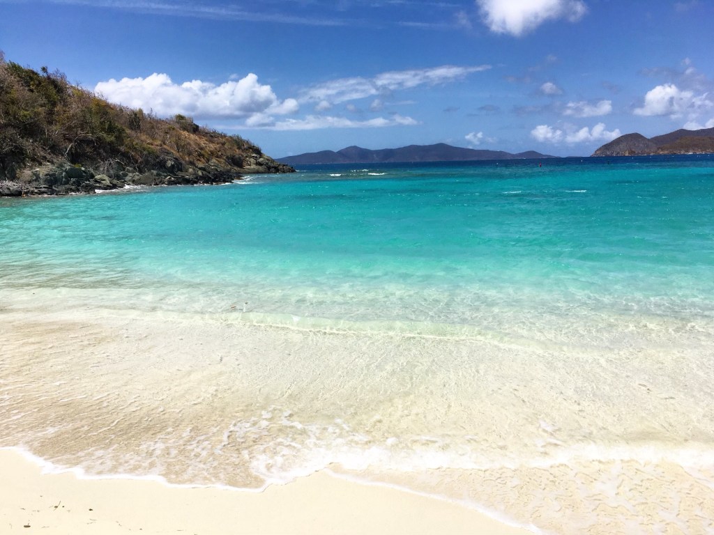 We only spend a little time there because we have another beach to see and itās the most famous one on St. John, Trunk Bay. Listed as one of the top ten beaches in the world , I can see why as we take pictures at the overlook!