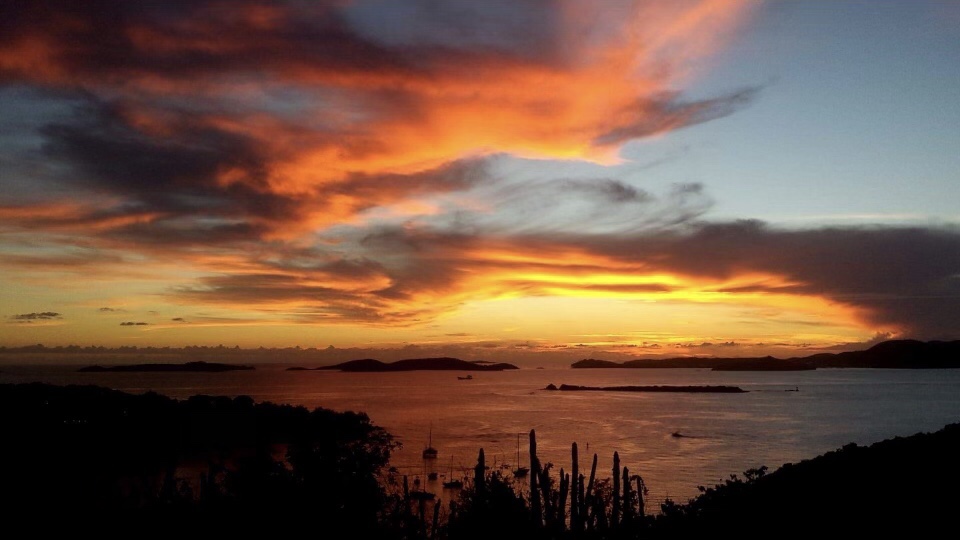 Oh, my!! Suddenly, Iām very tiredš„±and the sun is about to set so we hurry to the Wall , a great overlook of Cruz Bay. Spectacular!!