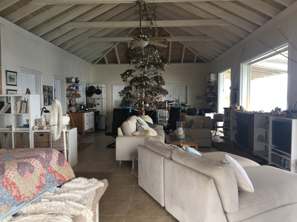 When we finally arrived (whew!), it was such a treat! Beside the spectacular view, his home was a great example of simple St. Johnian life. One huge room housed his bed, living space and kitchen with a small bathroom off the side. There’s even a tree that was growing inside the living area (he had planted years ago in a large pot) and he would decorate seasonally!! Plus a great long deck outside to lounge and take in the view of the ocean and St. John and all the way to the BVI😍