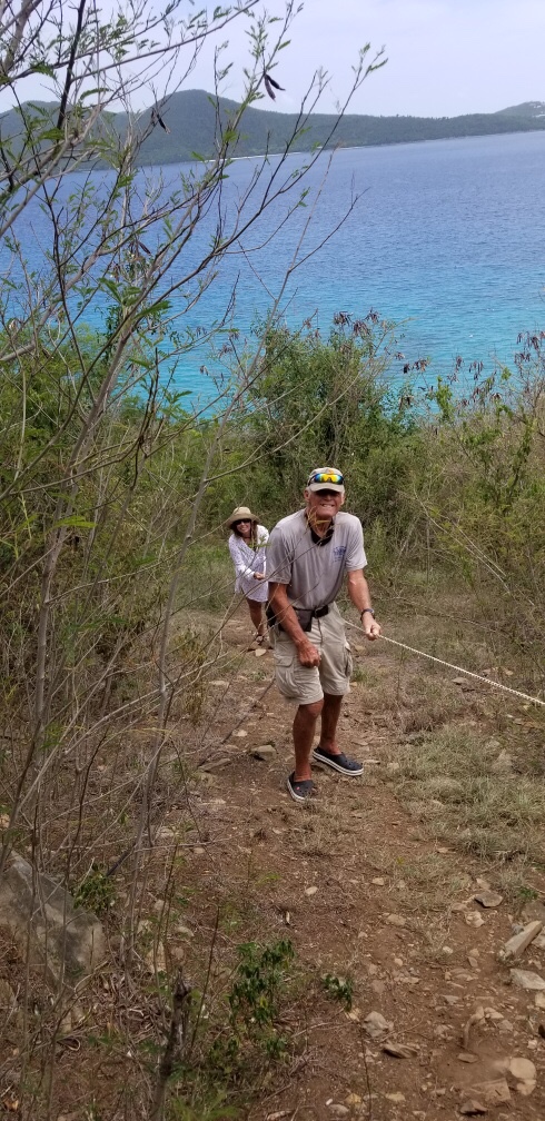 I was blessed to go out with Captain Phil, Trista and just one other friend on his sailboat, snorkel a bit then visit his home on Lovango Cay , which is a 114 acre private island one mile north of St. John and only accessible by water. Once we landed on Lovango, I saw how Phil stayed so fit. He lived on the hillside and to get to his home you had to use a rope guardrail to pull yourself along the treacherous pathway. Crazy!