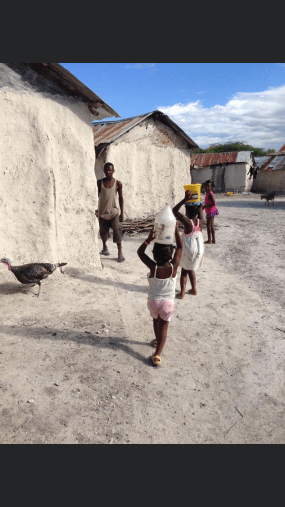 We take some time after dinner to walk to the nearby village of Chambrun. There are hut homes with tin roofs , mud walls and dirt floors. A communal shower in the middle of the village and an orphanage nearby. The women and children carry bucket after bucket of water down the road to cook, bathe and hand wash clothes. Life is very difficult yet they are always smiling.