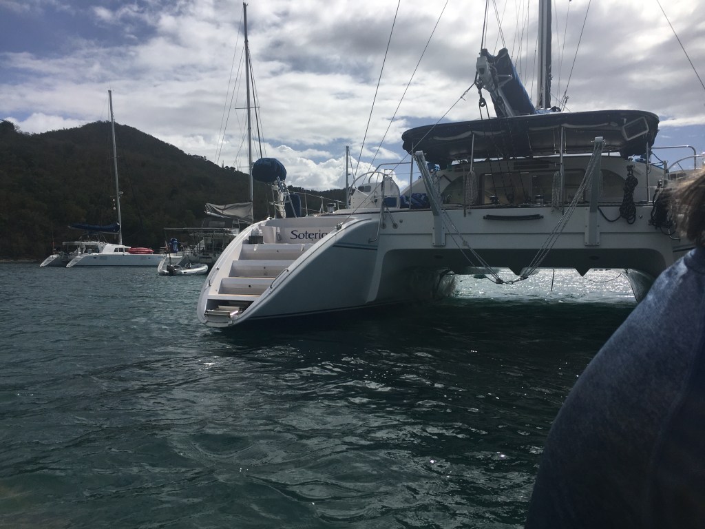 One couple, John and Anne Hill, are the epitome of hospitality and kindness. I’ve only known them for a few weeks but have been invited on a day trip on their luxury catamaran, Soterion. This is quite an honor since to charter this boat for a week would cost $18,000-$21,000😙