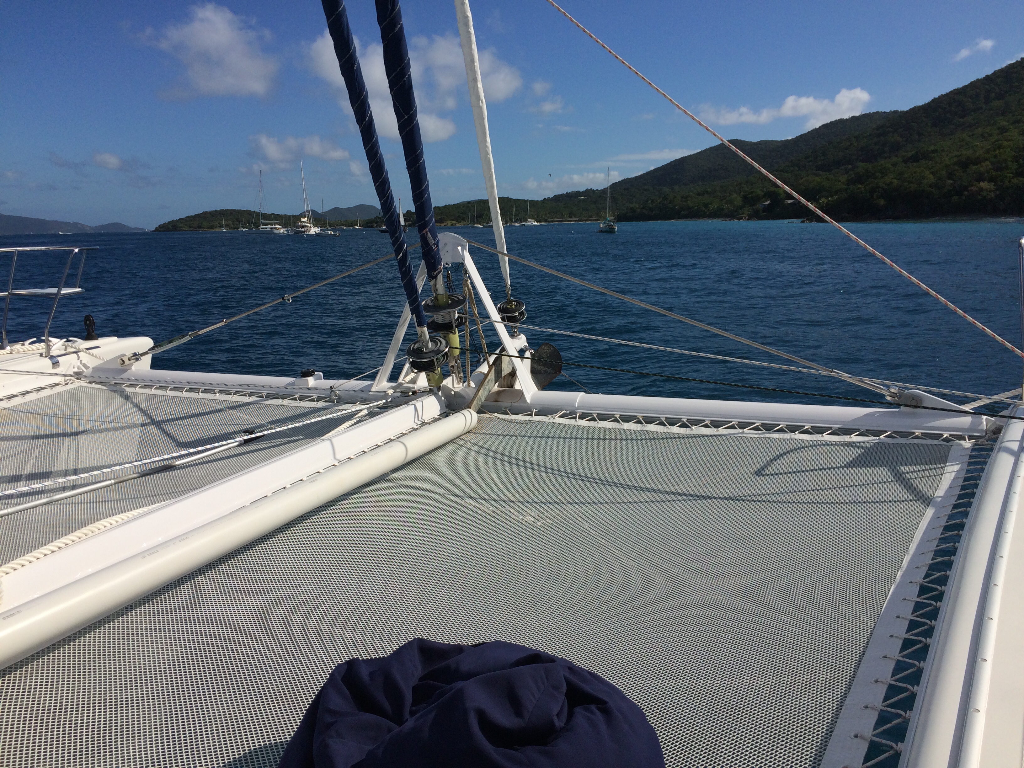 It’s a beautiful, sunny warm day and the seas are calm yet enough wind to sail and not have to motor around on the water. We enjoy a nice tropical drink and conversation laying out on the trampolines while sailing to our first destination, Caneel Bay.