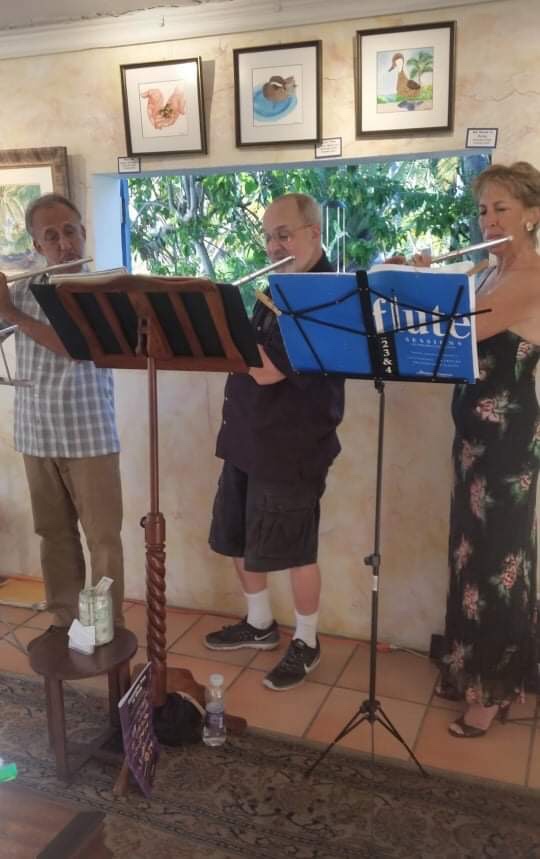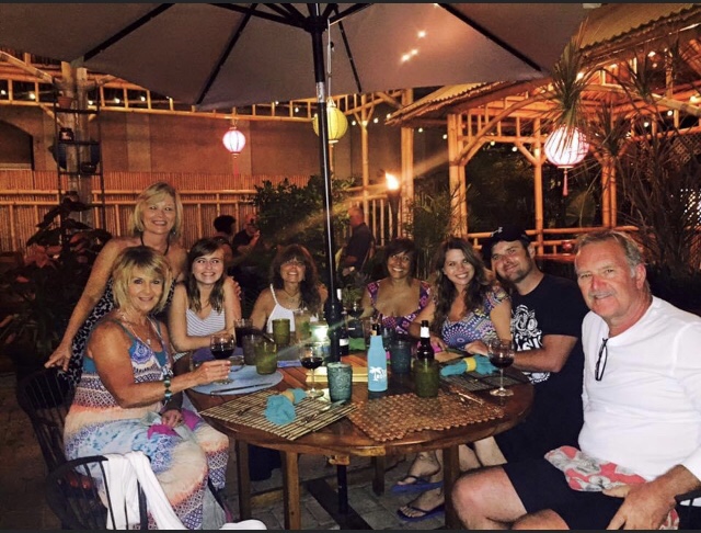 Day 7: Last day of the family visit. Michelle and I have to work so Molly spends the day entertaining the fam walking around town and helping them get pick out some souvenirs from local vendors. We all meet up later at Coconut Coast Studio for local artist, Elaine Estern’s fabulous Wednesday night open house. Free hors d’oeuvres , champagne and the famous Painkiller punch ( alcohol-free but the rum bottle there for those who imbibe…yes, thank you). The vibe is super with flute players providing classical music and the fabulous sunset view famous from Frank Bay.