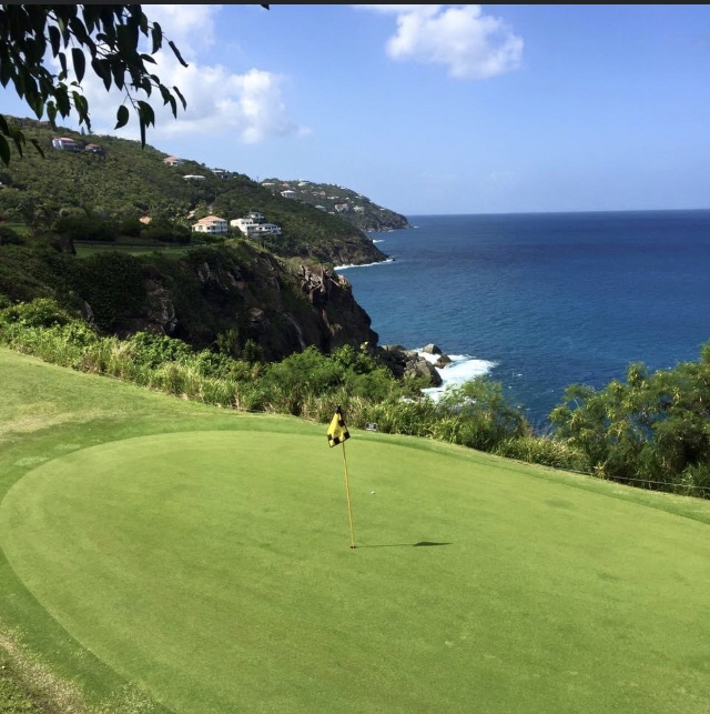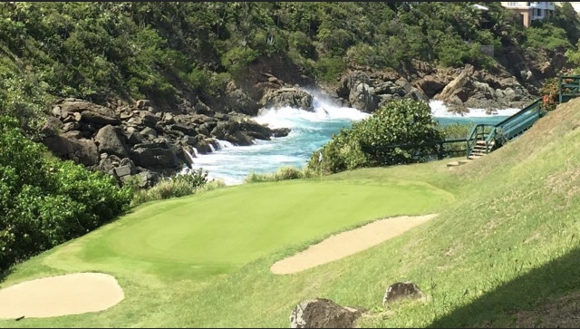So it’s Day 5 , son Nathan has brought his golf clubs and he and his girlfriend, Jessie, take the ferry over to St. Thomas to golf at Mahogany Run. This is a 130 acre 70 par golf course hailed as one of the most beautiful courses in the world.