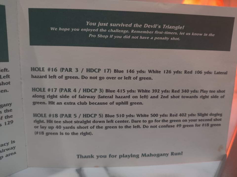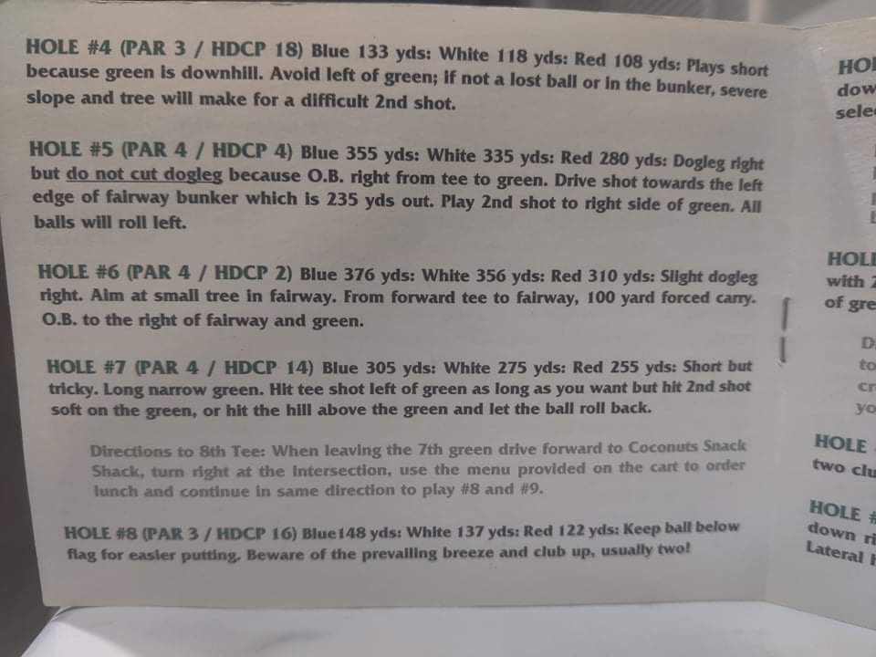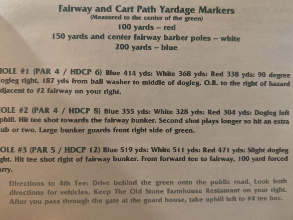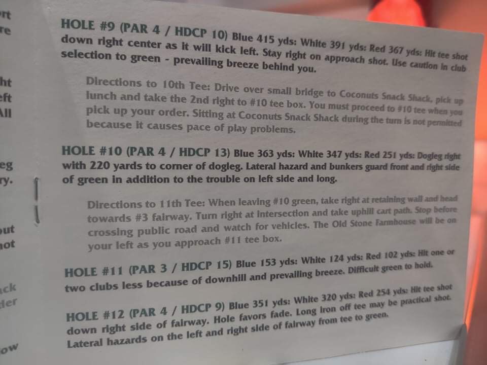 When they arrive, they get a score card but also interesting directions regarding each hole.