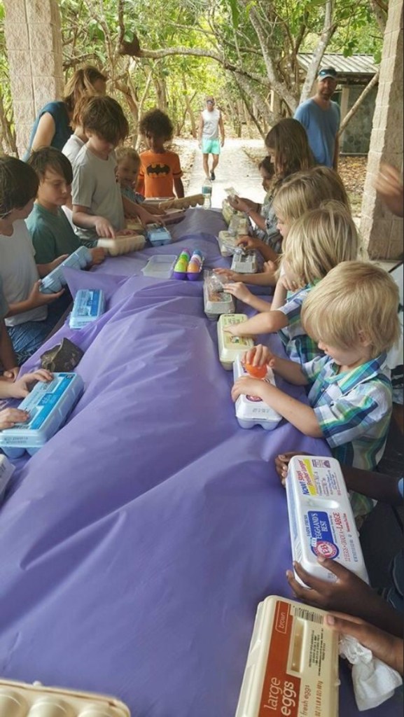 This day it’s my turn (with lots of help) to teach about Easter Sunday. Now, Easter Sunday is usually well-attended by not only regular members but others who live on island and tourists. We knew to expect a good amount of kids and planned ahead with hiding plastic Easter eggs with candy and Easter stickers for a hunt after the service.