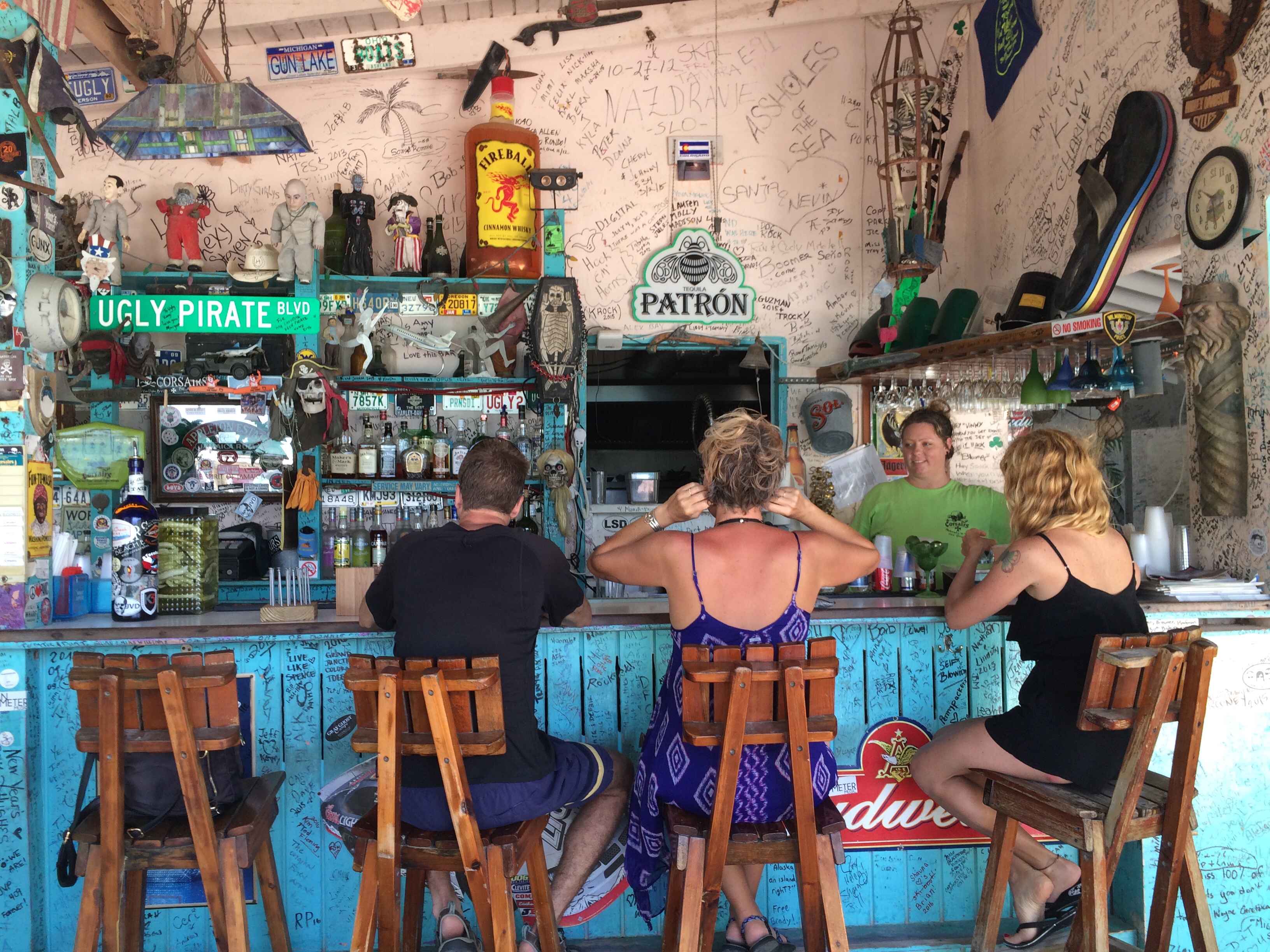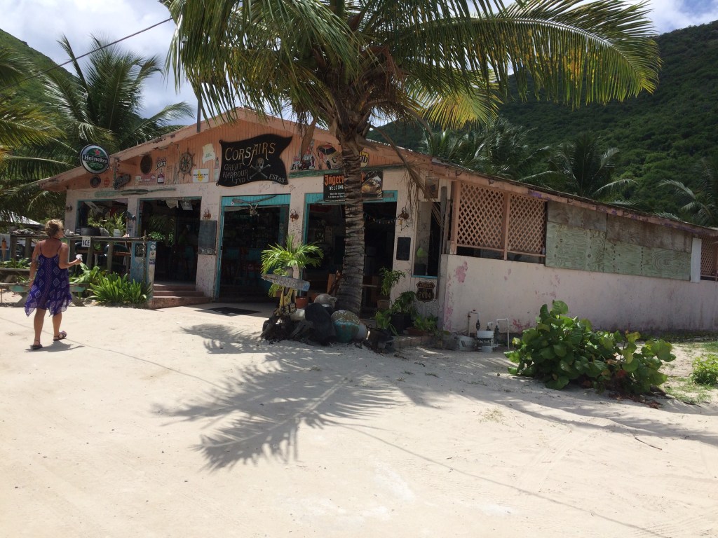 We have a nice boat trip over to Jost Van Dyke again but this time we visit Corsairs (definition:pirate) Bar.