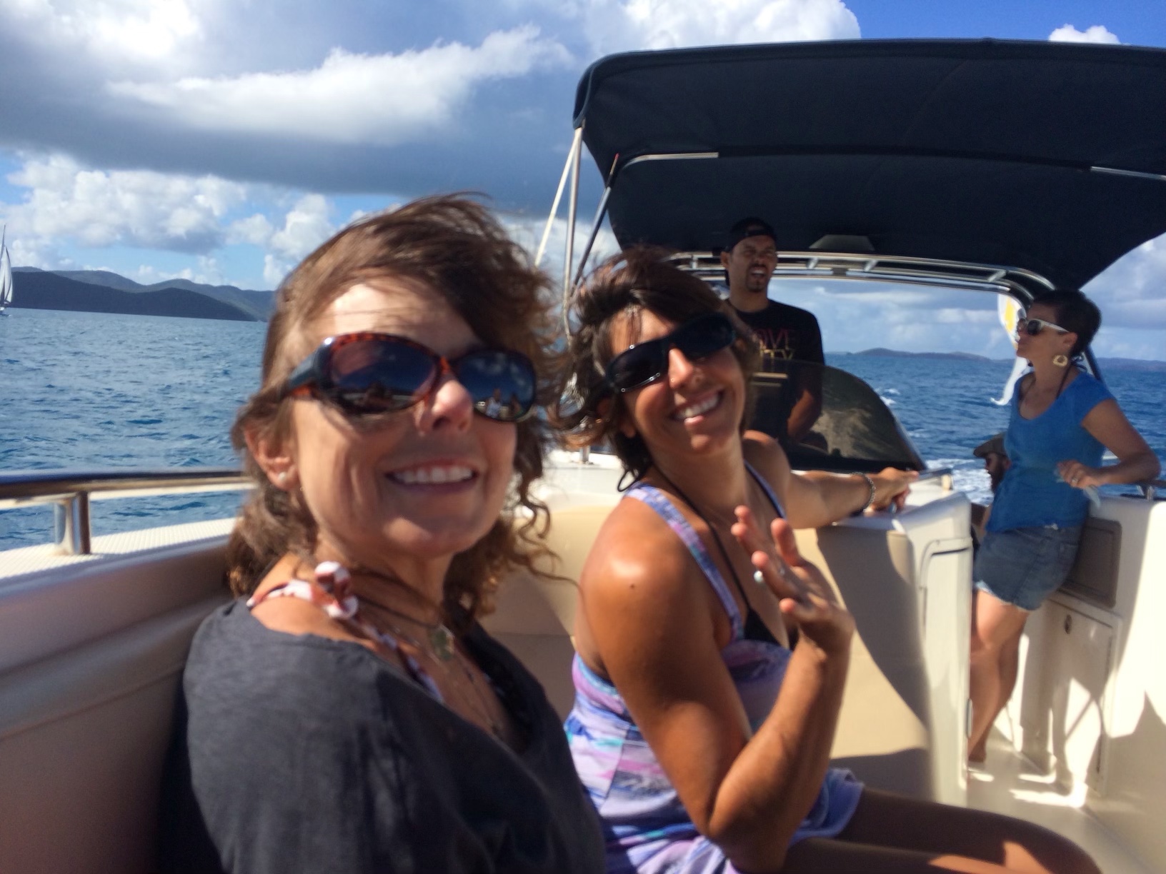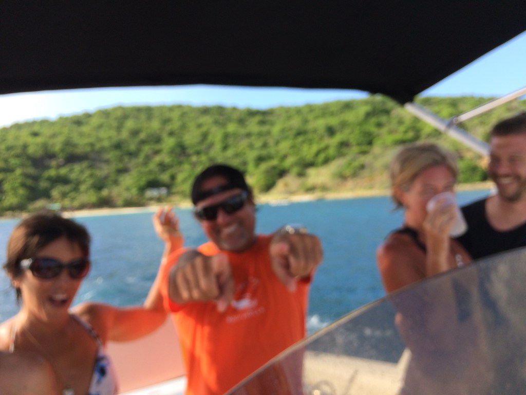 My third trip was a bit of a booze cruise/dance on the boat/ snorkel /swim day on another speedboat , RocknRolla, with Captain Iggy at the helm. Daughters, Michelle and Cortney, were on this trip along with friends, Courtney and Chris. Chris doesn’t live on island so when he’s here to visit girlfriend, Courtney, a boat trip to the BVI was in order.