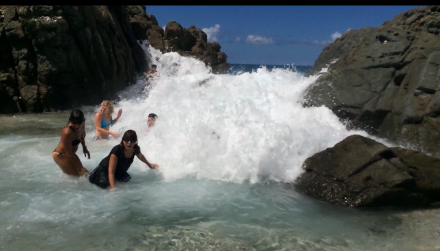 Next up is a short motor over to the Bubbly Pool back on Jost. Not an actual pool but a spot wear the waves come crashing through between some large boulders and you get the ‘wave ride experience’🌊😆