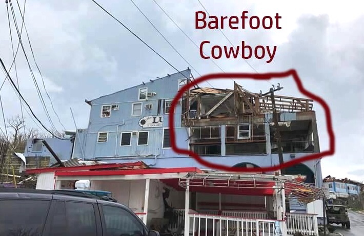 Zozo’s above Caneel Resort hotel rooms, equally destroyed