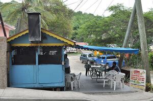 Now this little enterprise was owned and run by a West Indian local and probably most frequently patronized by the nearby locals. Delicious barbecue with sides of dirty rice and beans, corn on the cob, cole slaw and plantains. You could smell the BBQ grill cooking up these favorites as you drove by…. so that’s when you would swing your car back around! So yummy!!!