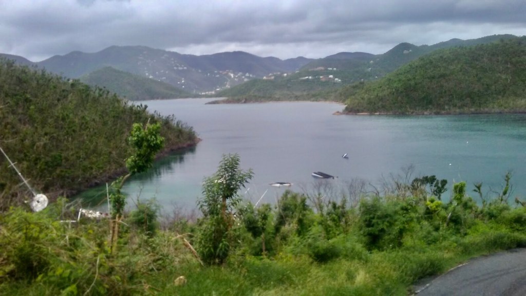 Michelle and Cortney and friends started boarding up the windows of the place they were staying, started stockpiling canned and paper goods and water , batteries, flashlights , gasoline for the cars and for the generator because they knew the electricity would go out. Electricity on the USVI goes out on a regular basis ,let alone during a hurricane, so they were trying to prepare for the worst. They also got out a lot of cash from the ATM. They also helped evacuate friends’ boats to a place called Hurricane Hole named because it was supposed to be a safe place for boats to be protected from tropical storms and hurricanes. Normally, you are not allowed to anchor there because it is part of the National Park and one of the few places where there are mangroves. Mangroves are protected because they are cycling/providing storage of carbon in the tropical coastal ecosystem. But during upcoming storms they are allowed to anchor there since it is a well protected area with mountains on either side of it.