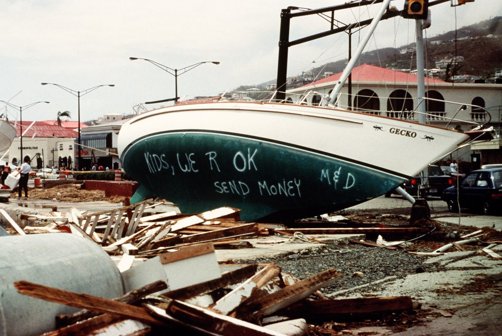 Two weeks later, the National Weather Service warned of a new tropical hurricane building and it already reached a category two by August 31. This particular hurricane looked like it was heading for the Leeward Islands and the Virgin Islands. At this time both my daughters, Michelle and Cortney, were living on St John and they started to make a plan for the upcoming hurricane. First off, they knew that the structures that they were living in weren’t very secure so they would have to find a place to ride out the storm. Locals who had lived there for many, many years had survived previous hurricanes the worst being 1989 hurricane Hugo (category 4) affecting St Croix of the USVI and South Carolina in the states and then 1995 hurricane Marilyn (Category 3)