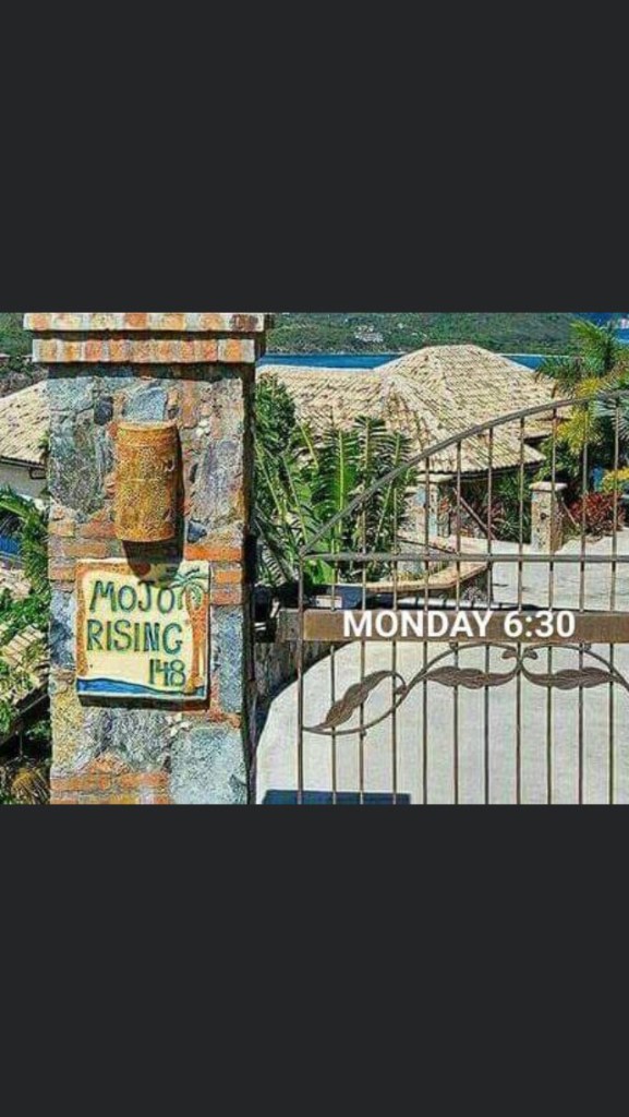 Once I get on St. Thomas, I stand at the corner and catch a dollar taxi called a safari. And, yes, it is only a dollar unless you’re going far and then it’s two dollars one-way😍 After work, it’s the same…safari, ferry then Jeep. But the difference is after work, I usually meet up with friends! Monday nights are Bible study and dinner and fellowship at a beautiful villa called Mojo Rising (😂)where our minister and his wife live.