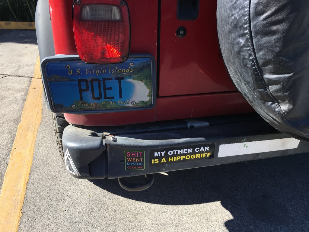 Life on island is a great mixture of work and pleasure. My typical day: Number one, you wake up to a tropical paradise! 🥰 Even though Lizard Hill is located midway between one end of the island from the other, there’s still an ocean view. I get into the Jeep, drive down to Cruz Bay (10 minutes) and try to find parking. Then I get onto the ferry to ride 15 minutes to St. Thomas, where I work. Sometimes when I look over the side of the ferry, I will see turtles swimming, tropical fish including large barracuda and once I saw an Eagle ray. Some have been fortunate enough to see dolphins 🥰
