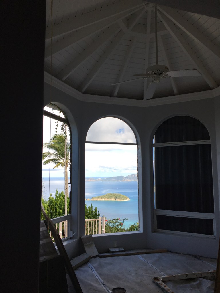 This is what happened when Hurricane Irma destroyed the main house on a property named Lizard Hill on St. John . A friend of mine, Max, had been renting the cottage behind the main house for a few years and the cottage only had slight damage to one corner of the roof which was easily repaired. With the main house gone there was an incredible view of the ocean and beach below.
