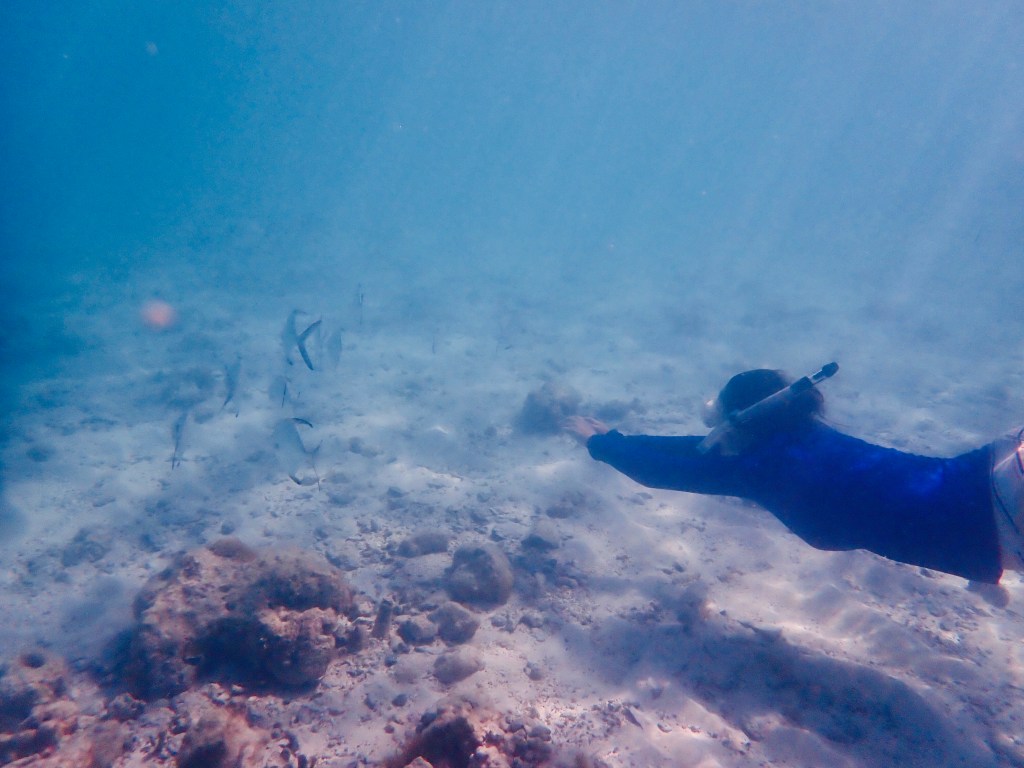 When I immediately enter the water on the east side, I will encounter the tiny mackerel swimming about. It’s nice and shallow so I can get close-up shots.