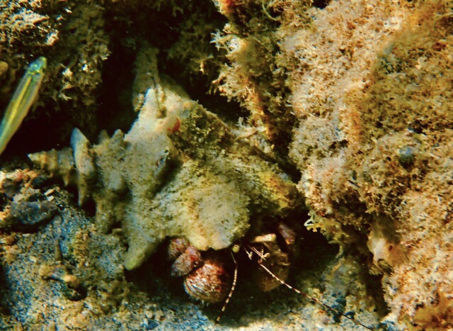 Crabs will move in and out of shells they find as they grow. The larger they get, the bigger house they need. This guy was in about the largest shell around!