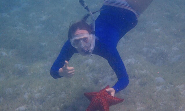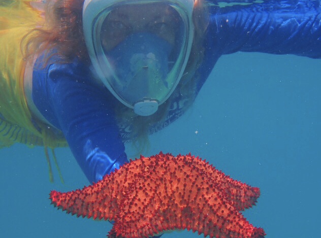 My snorkeling buddy, Korena, is notorious for finding the unusual. She’s a mermaid, like me, as we would rather be snorkeling than doing anything else on island. She found this starfish and encouraged me to hold it but I was nervous about touching or hurting it.