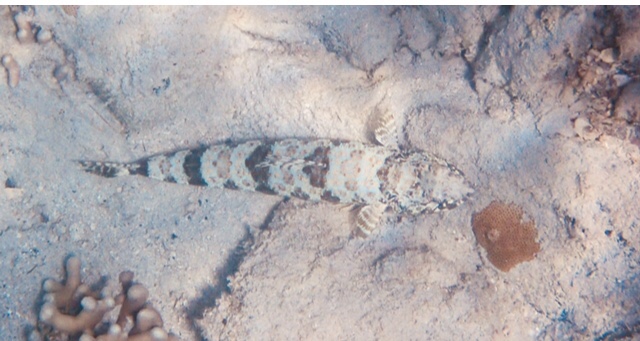Roughback Batfish (ogcocephalus parvus) are rare to find but I believe this is one. I couldn’t see its mouth which is supposed to be bright red so I’m not sure. But I am welcome to any other suggestion as to what this fish might be??