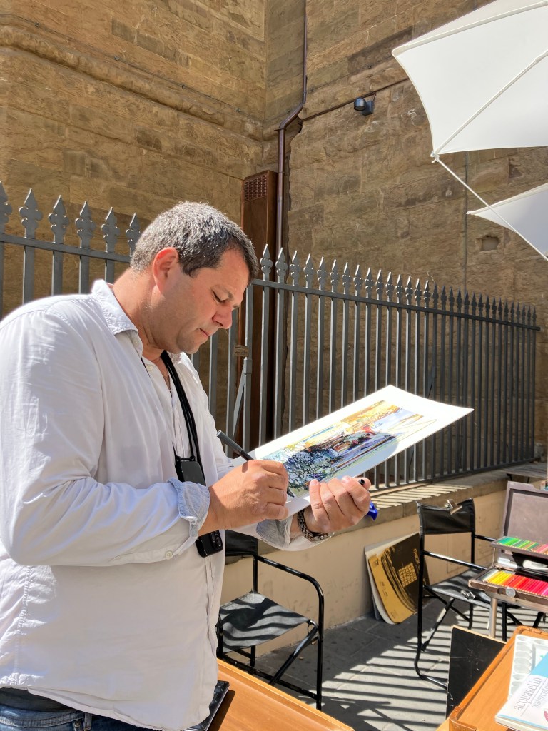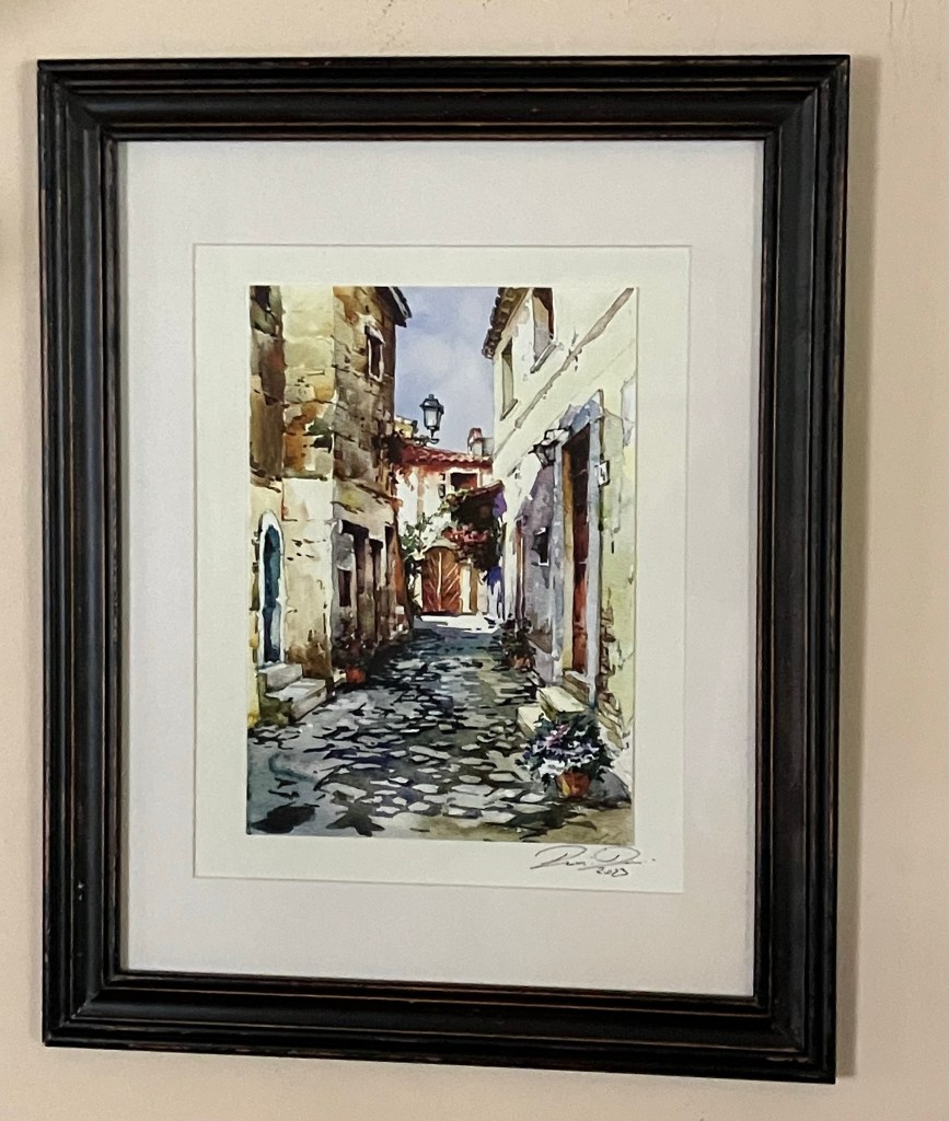 I fell in love with this artist’s work and purchased a watercolor of a street in Florence: